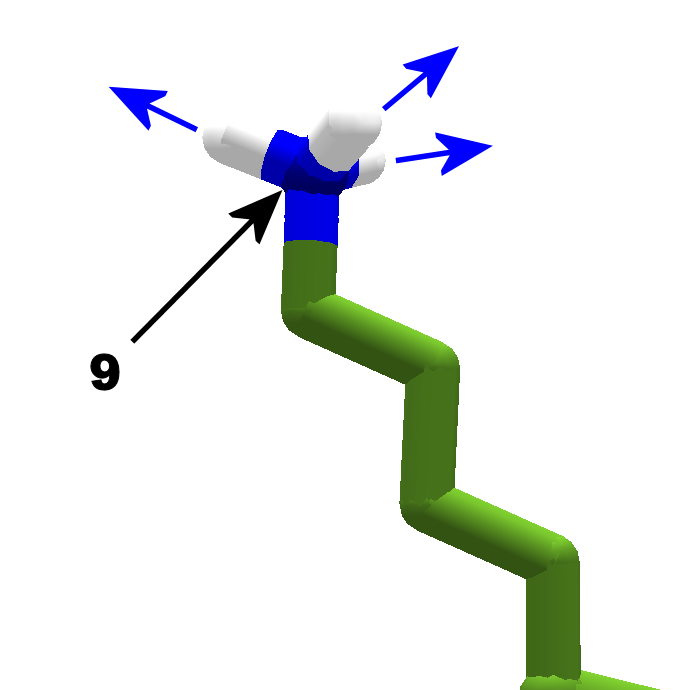 Lysine's sidechain contains a nitrogen atom which can act as hydrogen bond donor. The end of the sidechain is a amino group, the same structure found in the backbone of amino acids. The carboxyl group means Lysine's sidechain is formally considered basic. See the Sidechain Bonding Gallery and the Sidechain Bonding Table for other sidechain donors and acceptors.